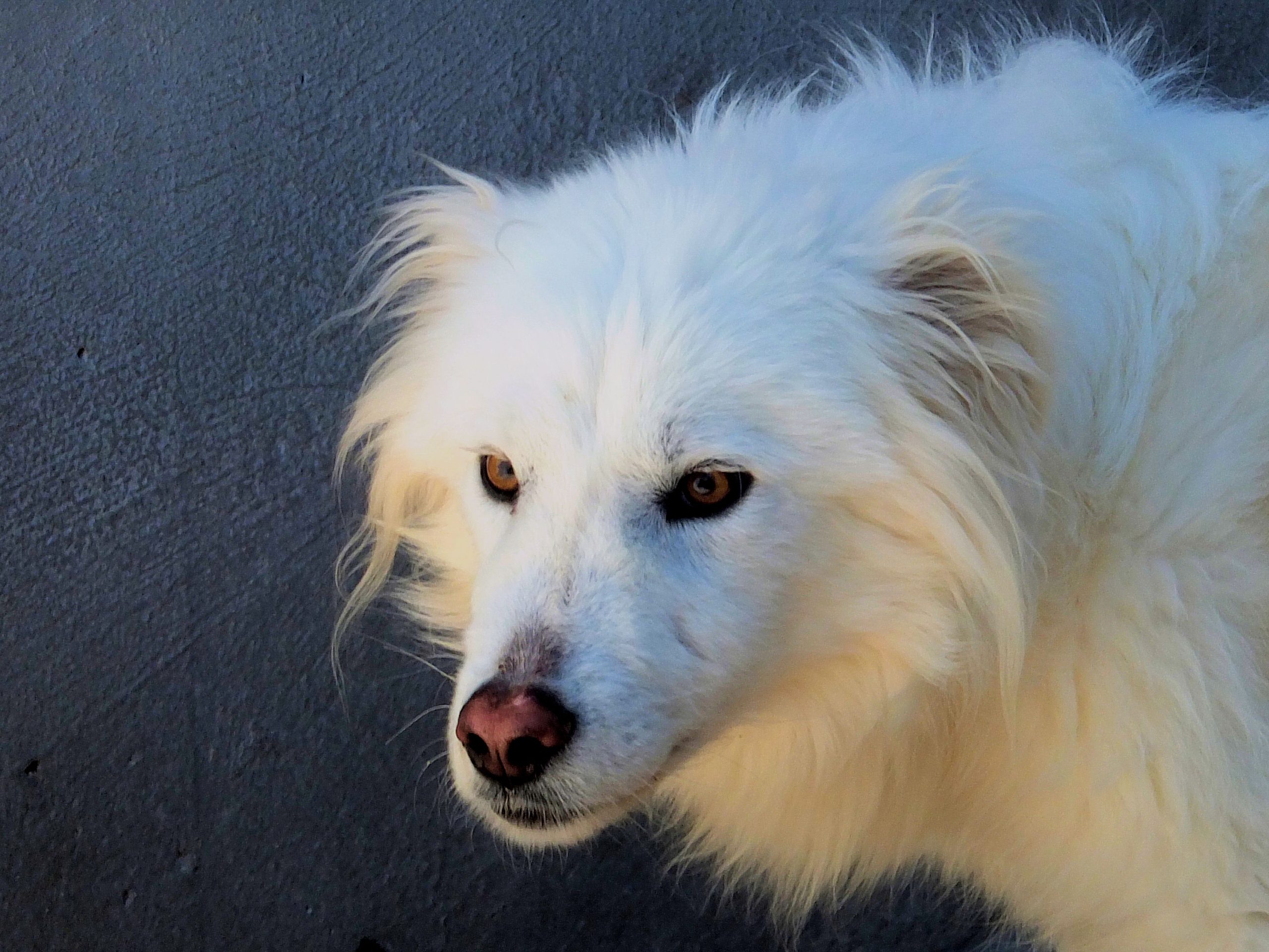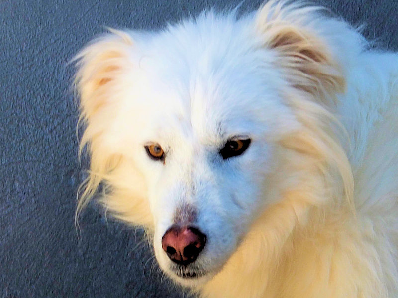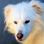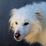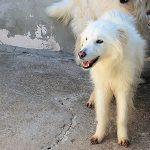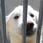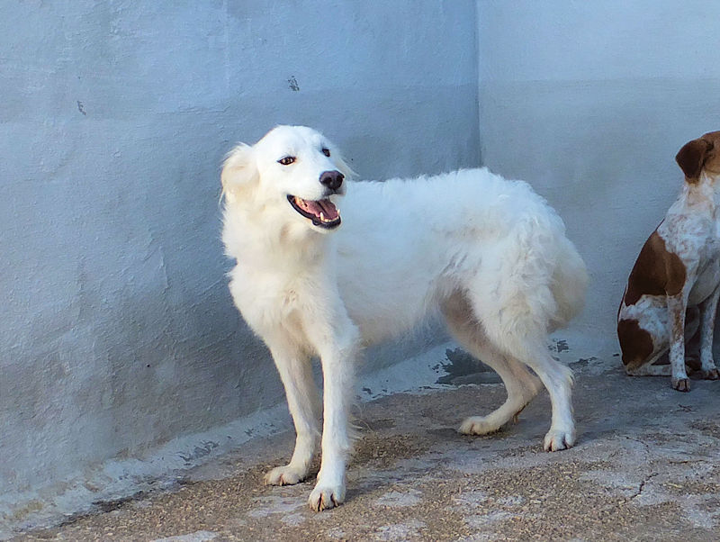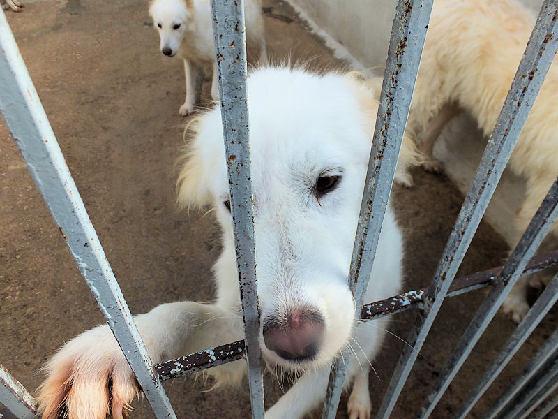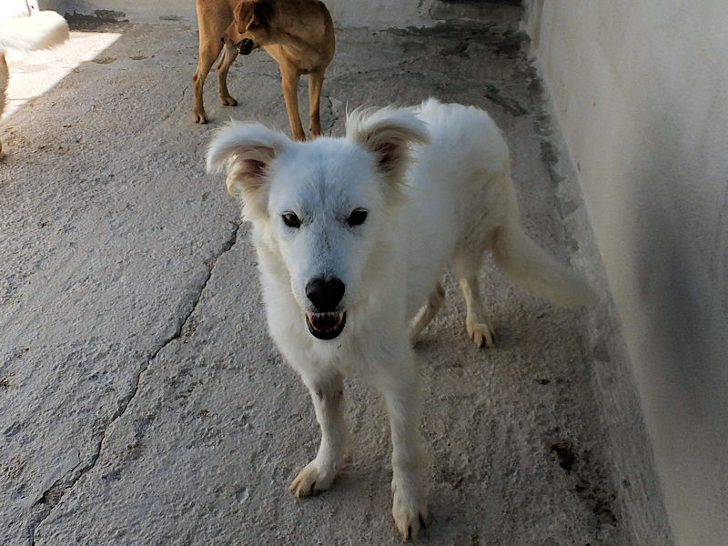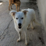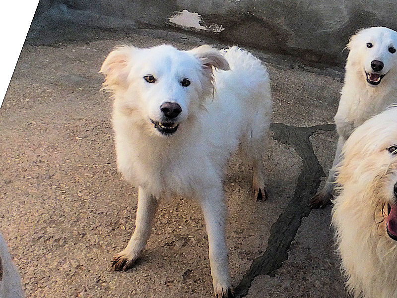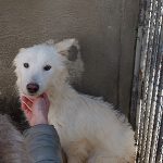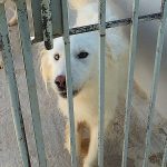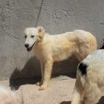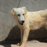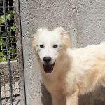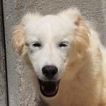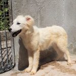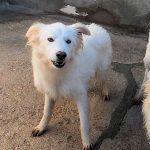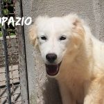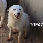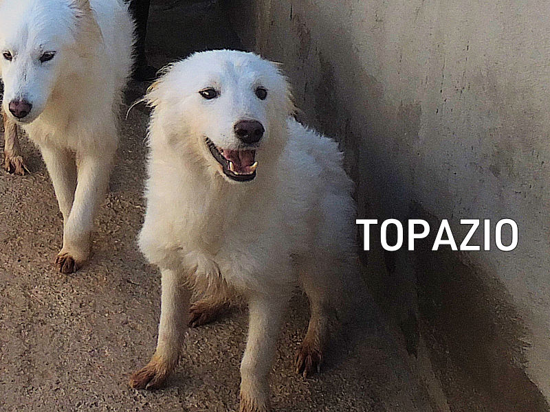 Topazio è un  tipo Golden ma bianco,  nato probabilmente a novembre 2018, una taglia media, sui  20 kg  Finito in canile a gennaio 2019.