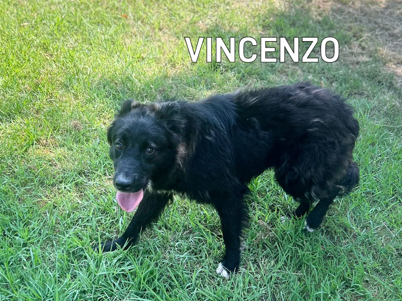 Vincenzo è un bel cagnolotto lontanamente setter il suo triste passato, lo ha reso un poco timido, esitante nei confronti delle persone. Ha imparato a fidarsi poco, ma lo vediamo allegro, curioso, pieno di gioia di vivere.