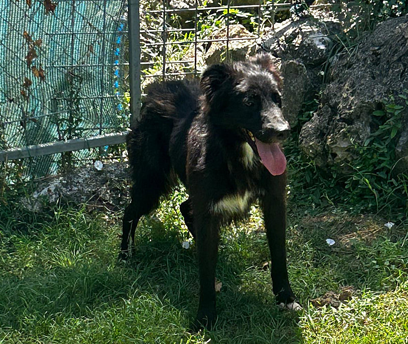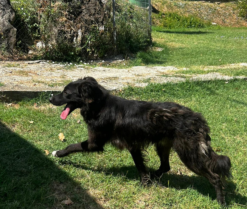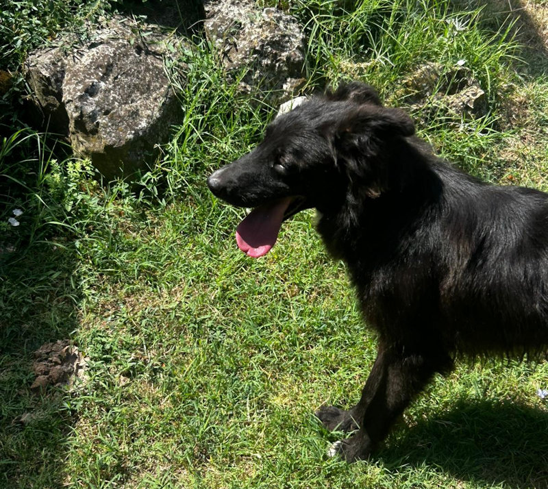 Vincenzo bel cagnolotto nero un po’ setter, del tipo Flat Retriever, è una taglia media sui 20 kg. Non sappiamo esattamente la sua eta’ ma potrebbe essere nato nel 2019 ed è in canile da maggio 2025