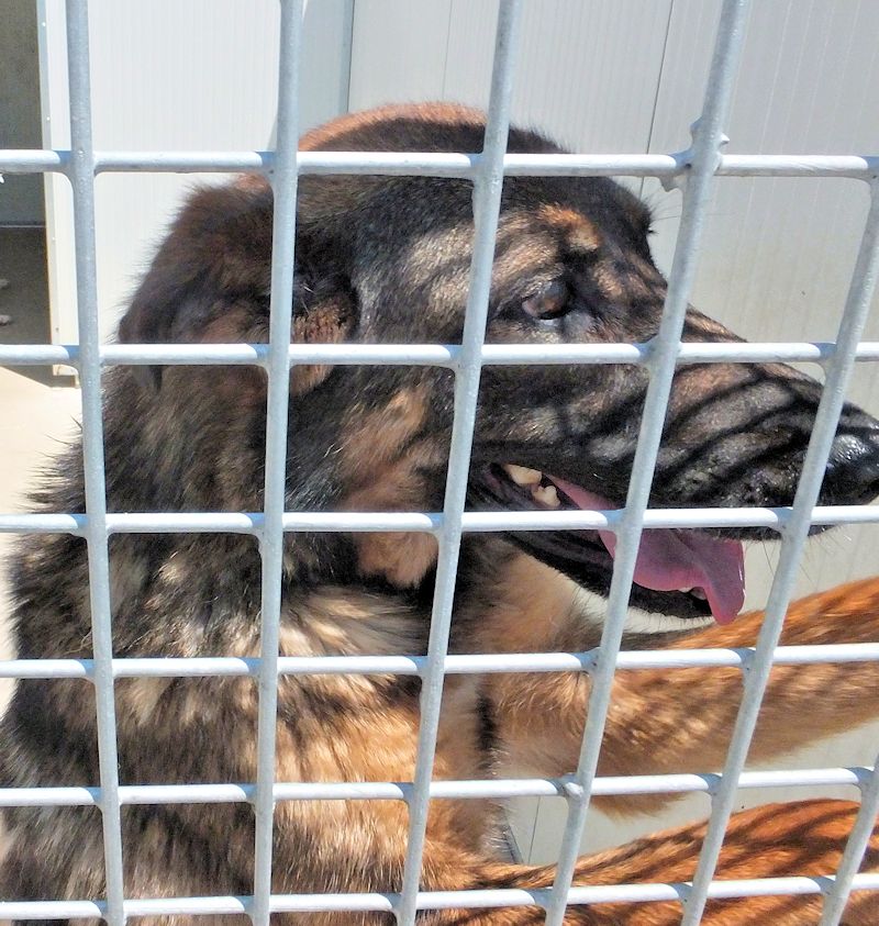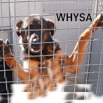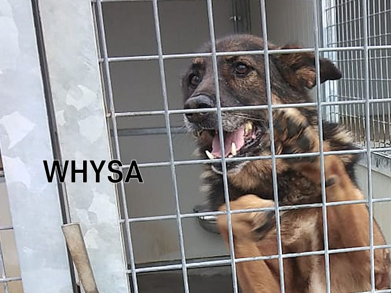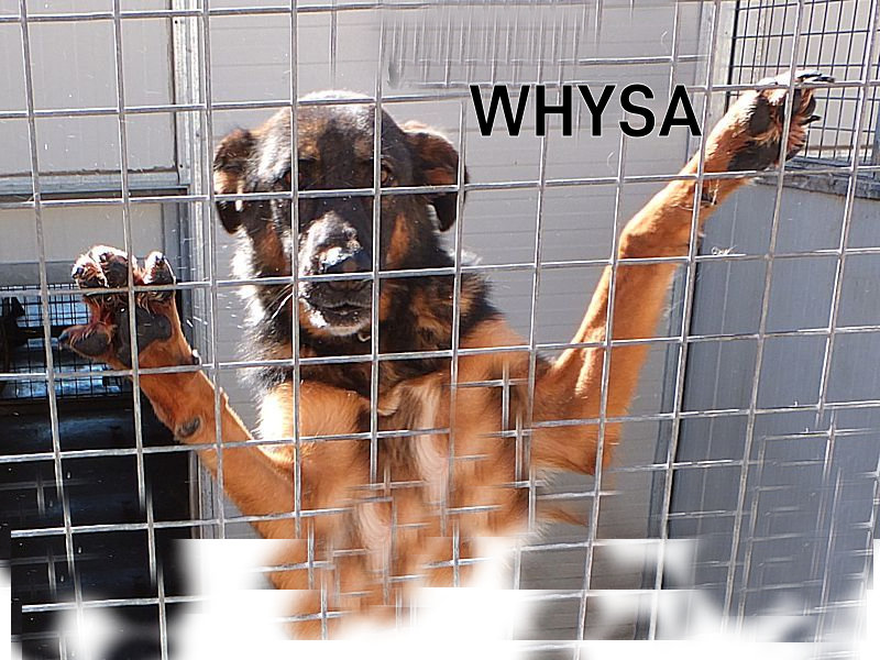 Vhysa derivato lupoide di taglia mediogrande, sui 26 kg, è nata ad aprile 2013, è servita come giocattolo per qualche mese ed è stata abbandonata finendo in canile a sette mesi, a novembre 2013. Ormai anziana, morira’ in quel box ?