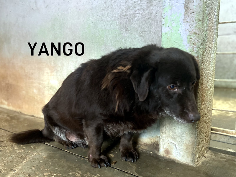Yango   meticcetto nero   è una taglia contenuta sui 14-15 kg. Nato  a marzo 2020, aveva solo  due anni  quando è finito in canile, ad aprile  2022