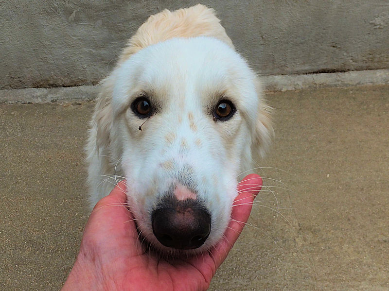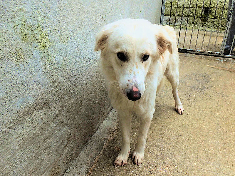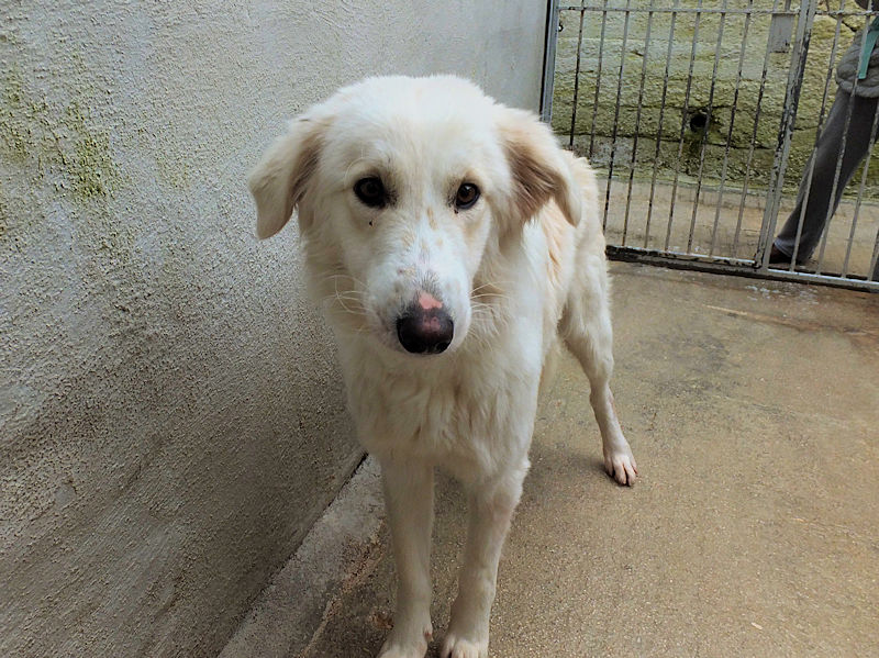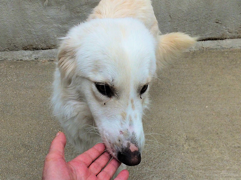 Ci ha accolto nel box con un poco di timidezza, gli esseri umani non si sono comportati bene, con lei, e ci vuole un pochino di pazienza per conquistarla, ma,  come tutti i cani, il suo cuore non desidera alto che dare  e ricevere amore dagli umani.