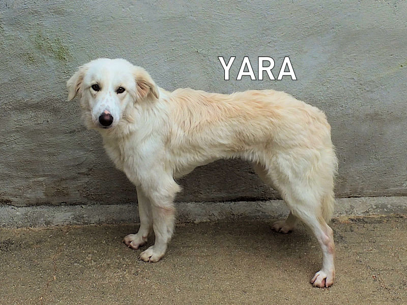 Yara splkendida cagnoletta tipo setter è una taglia mediogrande, peso forma sui 27 kg ma attualmente ancora magra, è nata a gennaio 2024 ed a  meno di due anni è finita per la strda e poi in canile, a d ottobre 2025