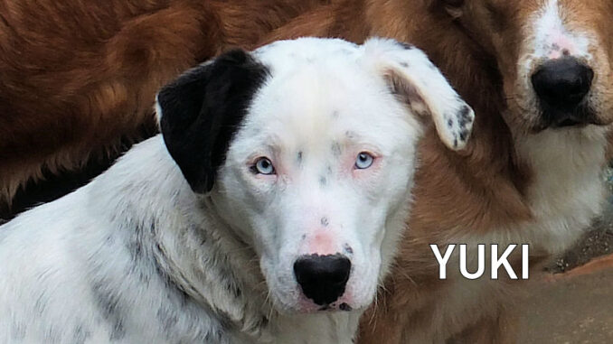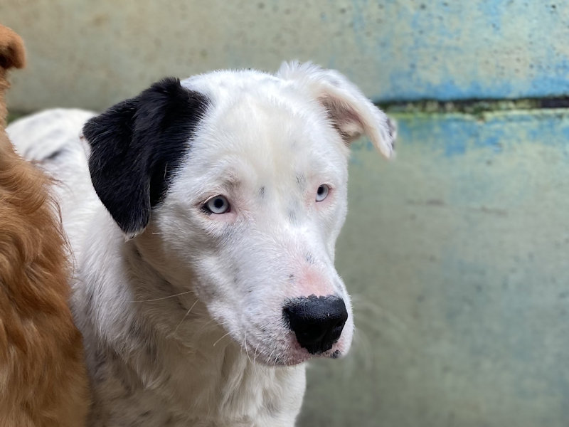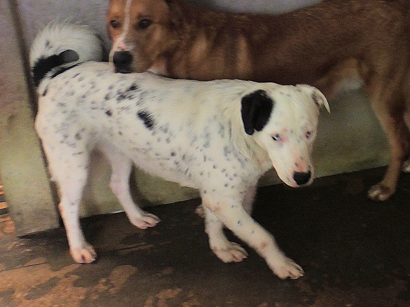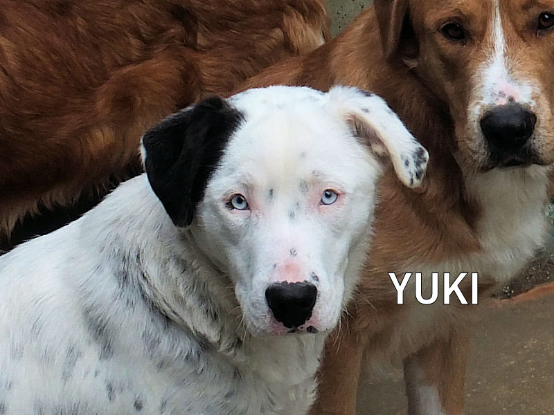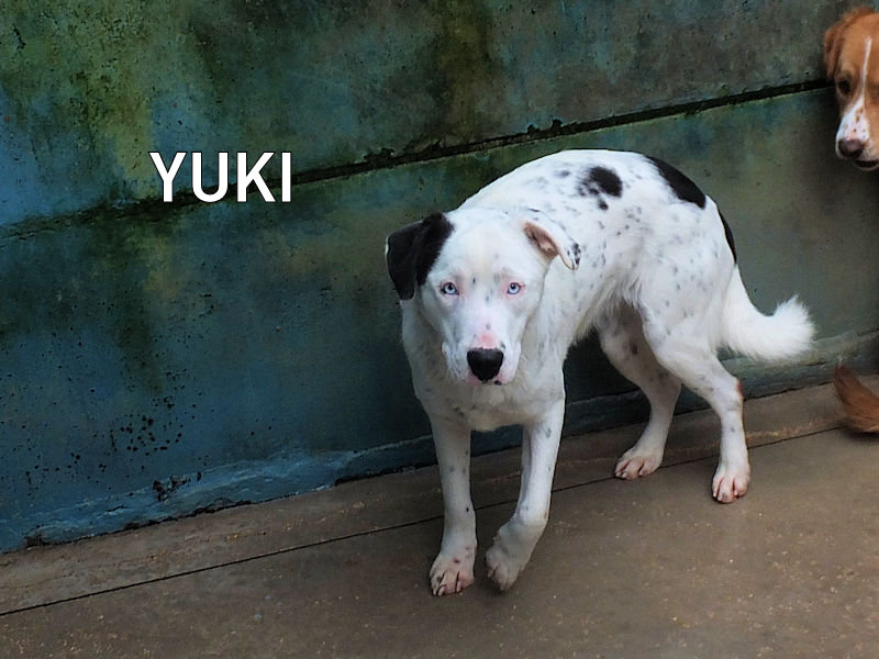 Yuki splendida femminuccia semba una piccola Dalmata con gli occhi chiarissimi, timidina e tranquilla, è una taglia media sui 18 kg. Nata ad ottobre 2024, a nove mesi si ritrova in canile a lluglio 2025