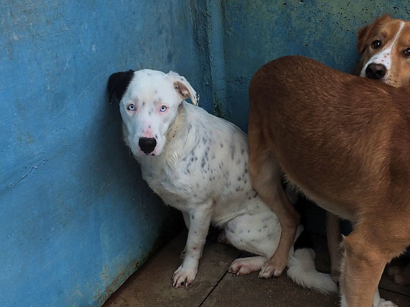 Finiti in strada e poi subito in canile,Yuki è la piu’ piccolina, timidella ma curiosa e allegra,. Timidina, cerca un po’ di evitarci ma la vediamo che ci ossera di soppiatto per capire chi siamo e cosa vogliamo.